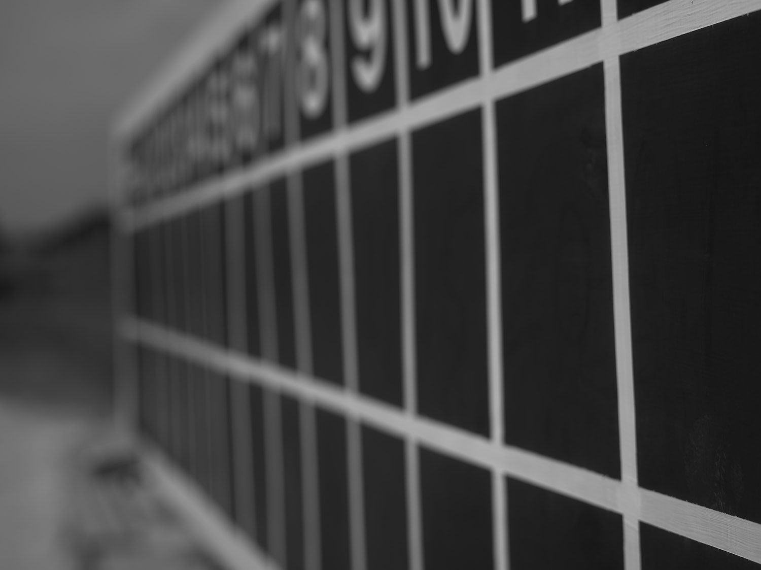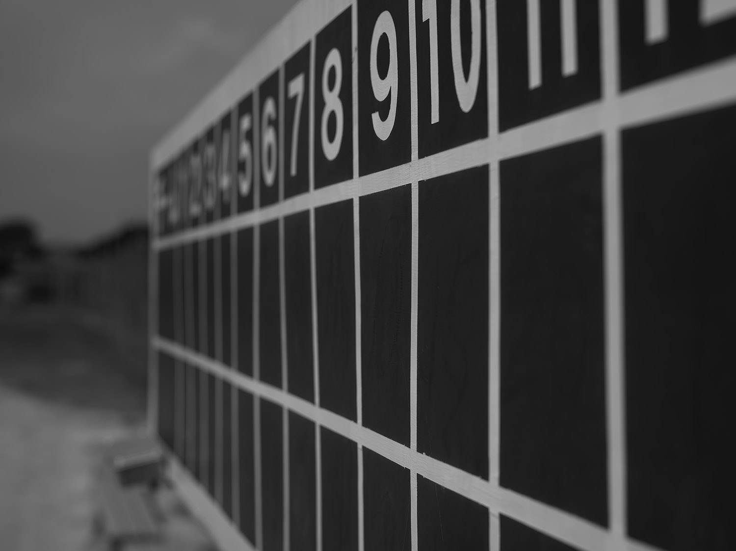 そして最後の2枚、スコアボードですが、1枚は通常の開放最短1mで撮影したもの、2枚目はマクロヘリコイドで最短を38cm程度にしたもの。番号9のところに当たっていた焦点が、最短で(おそらく)番号12の手前側の白線あたりに焦点が当たっている。(このあたりあまり正確ではないのですが、50cmくらいは手前に引ける感じでしょうか)